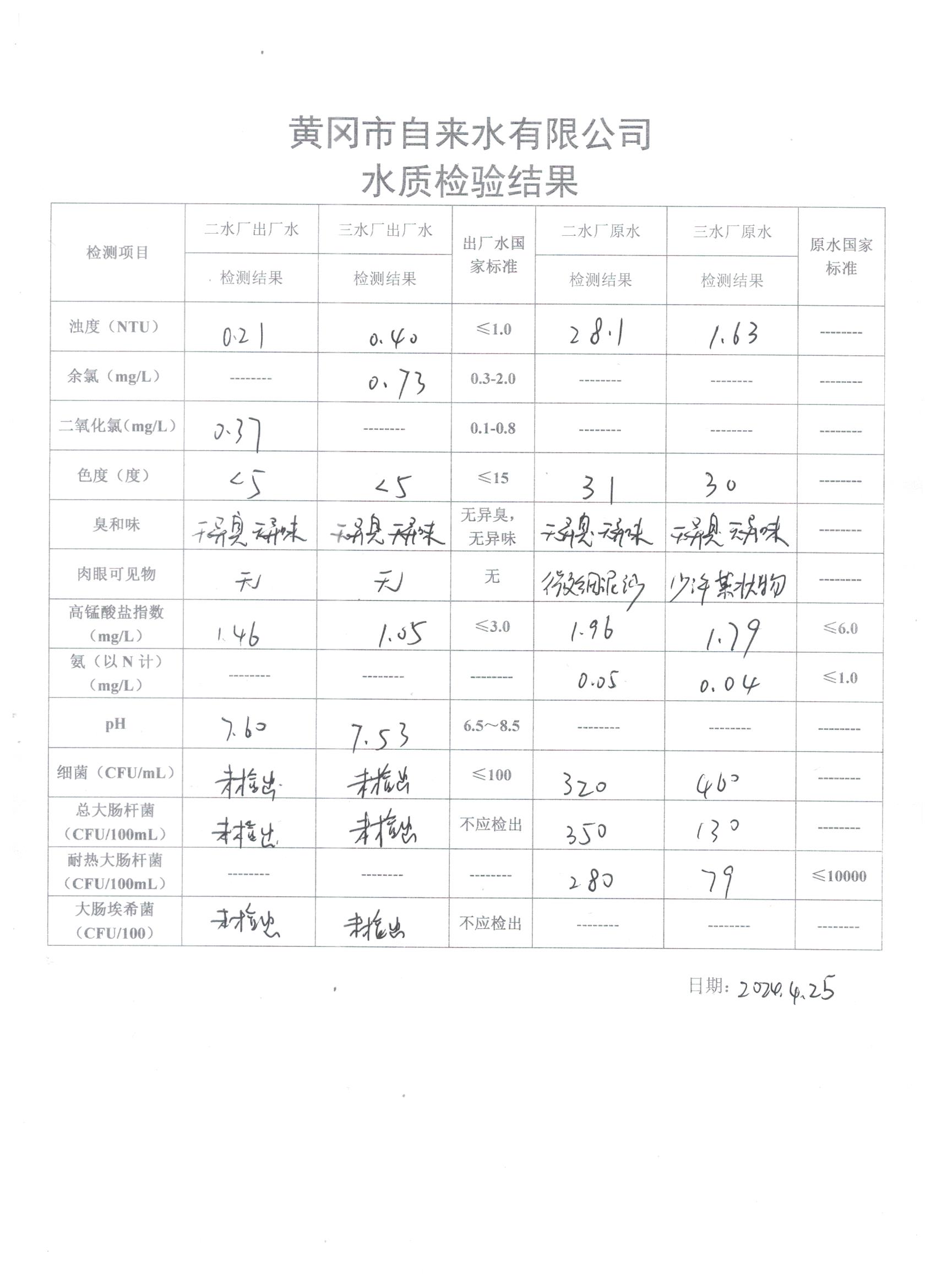 2024年4月25日水質(zhì)檢驗(yàn)日報(bào)表