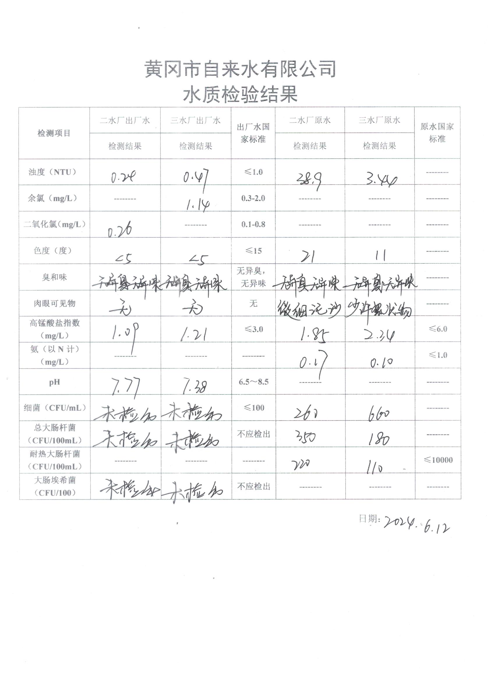 2024年6月12日水質(zhì)檢驗(yàn)日報(bào)表