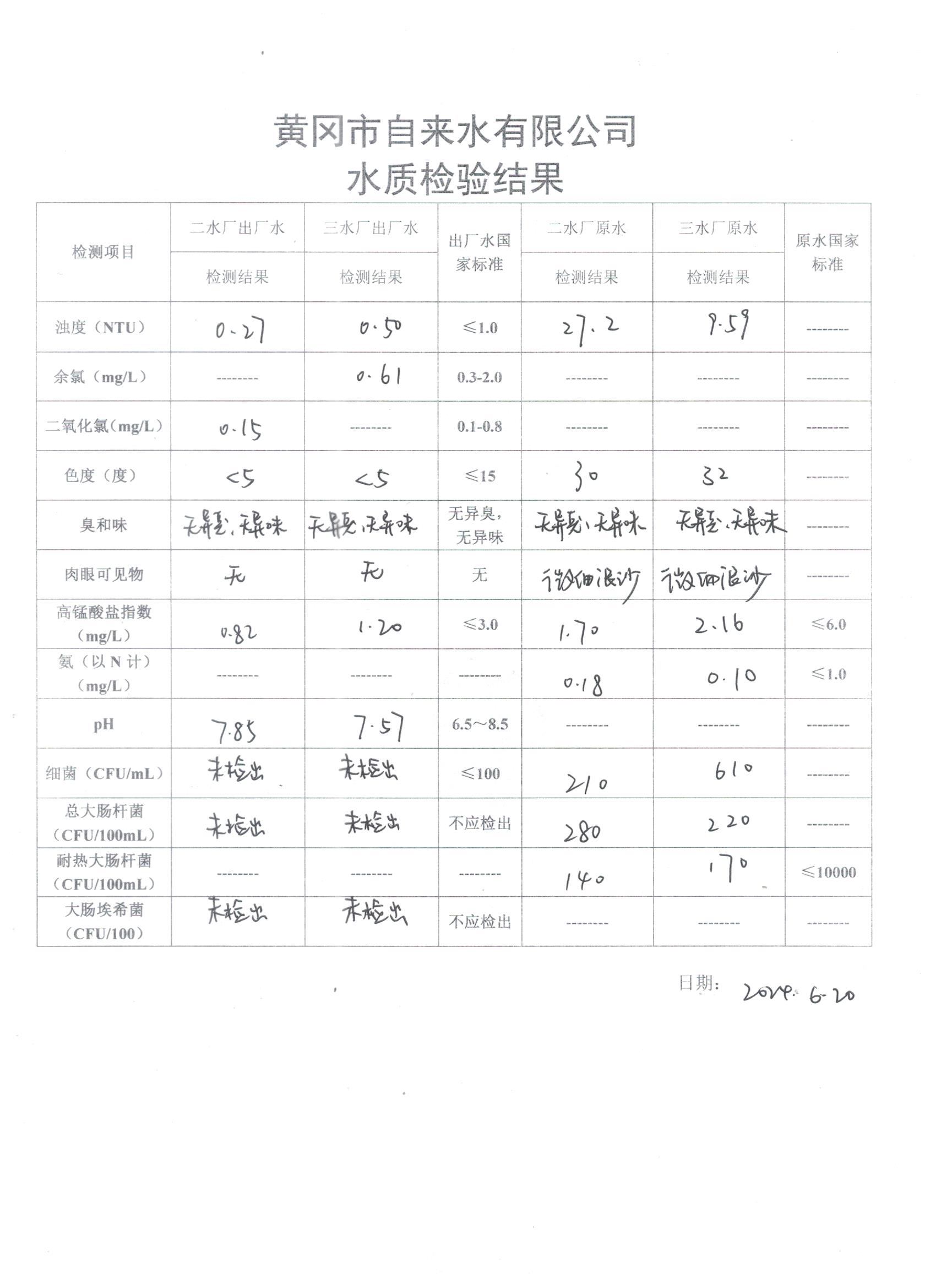 2024年6月20日水質(zhì)檢驗(yàn)日?qǐng)?bào)表