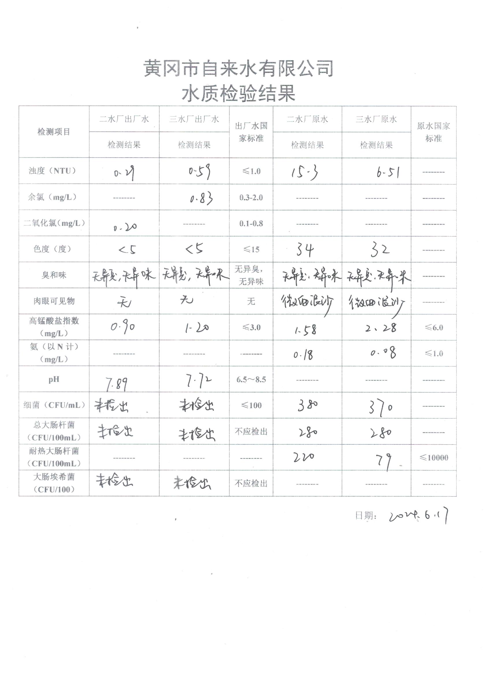 2024年6月17日水質(zhì)檢驗(yàn)日報(bào)表