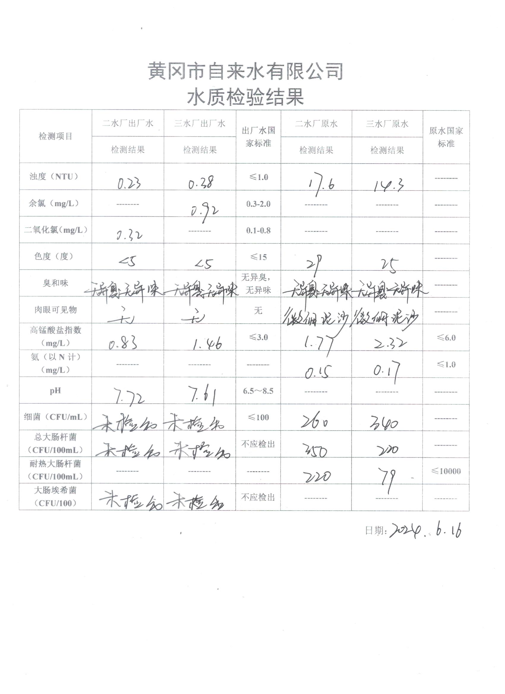 2024年6月16日水質(zhì)檢驗(yàn)日?qǐng)?bào)表