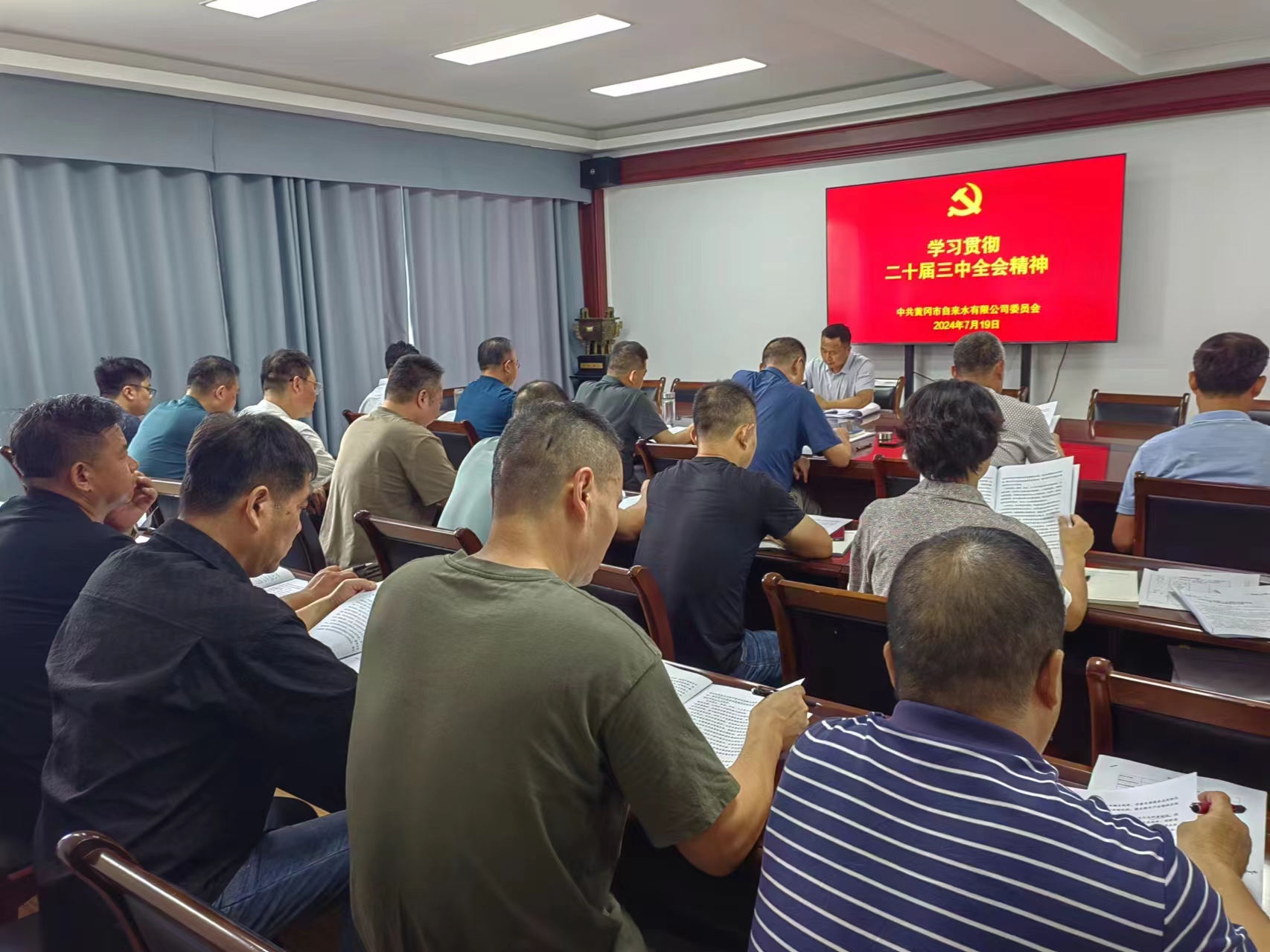7月19日,黃岡市自來水有限公司召開學(xué)習(xí)貫徹黨的二十屆三中全會(huì)精神大會(huì)。公司黨委書記、執(zhí)行董事、總經(jīng)理段欣榮主持會(huì)議并講話。公司班子成員、各部門主要負(fù)責(zé)人參加了會(huì)議。